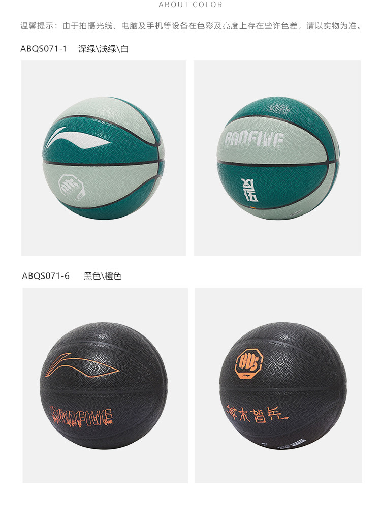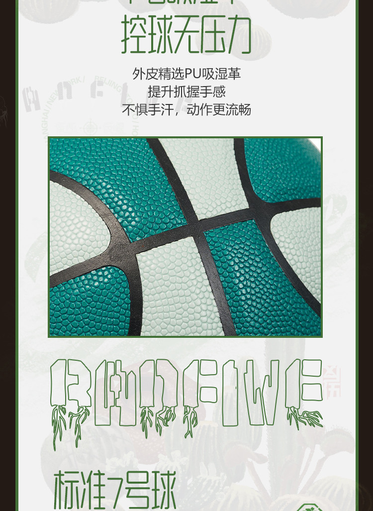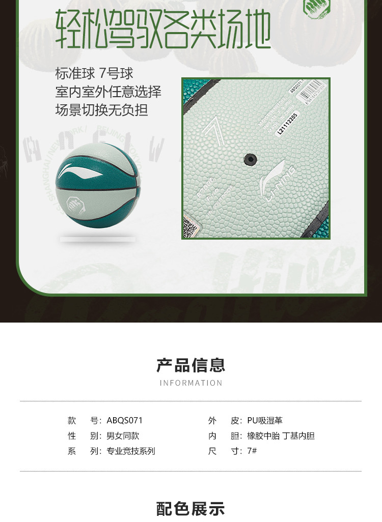 | 篮球规格: | 7号/标准 | 篮球材质: | 外皮:PU吸湿革 内胆:橡胶中胎 丁基内胆 |