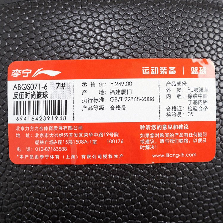 | 厂家地址: | 北京市通州区中关村科技园通州园光机电一体化产业基地兴光五街8号(具体批次信息或有不同,请以实物吊牌信息为准) | 主款式: | 篮球 |