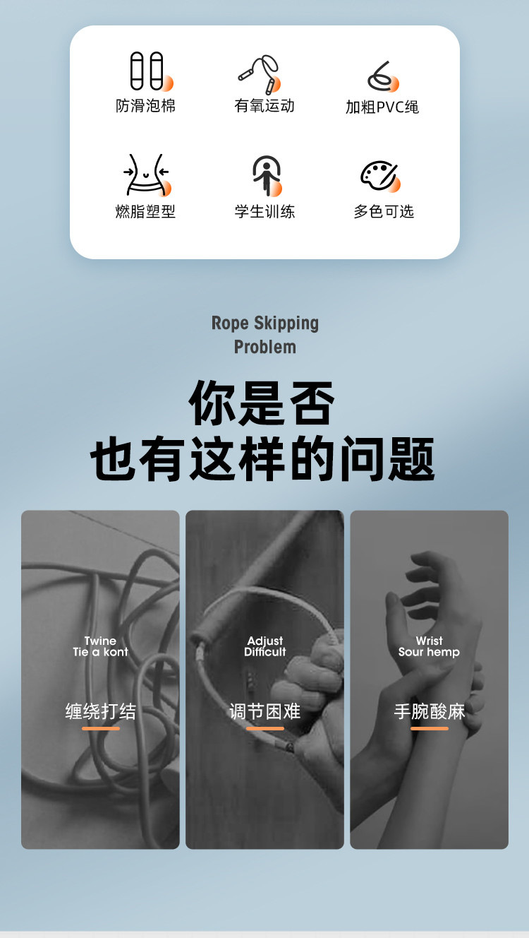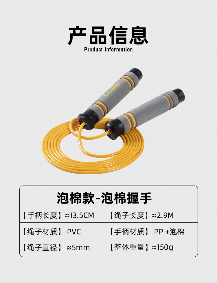 跳绳健身运动中考防滑泡棉训练专用绳