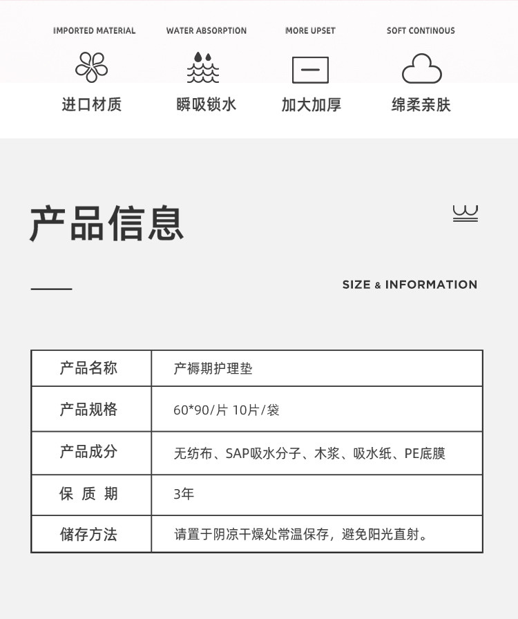 | 分类: | 产褥垫 | 适用阶段: | 孕晚期,月子期,产后/哺乳期 |