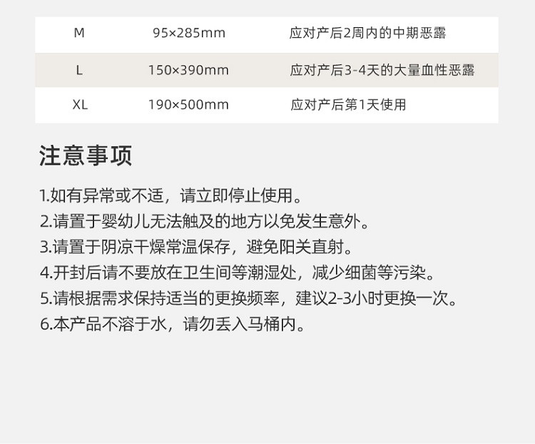 | 分类: | 绵柔卫生巾+护理垫 | 适用阶段: | 月子期,产后/哺乳期,孕产妇通用 |