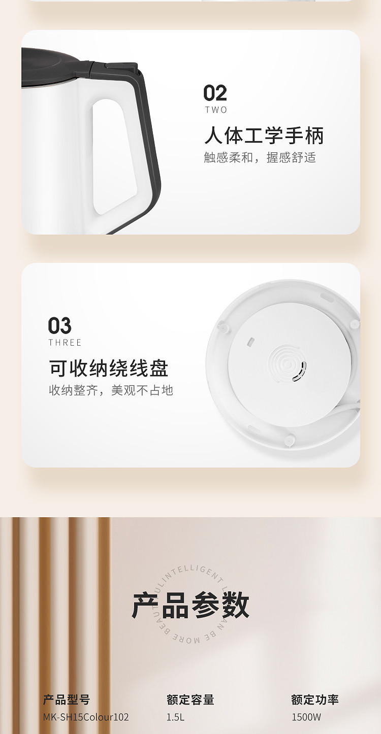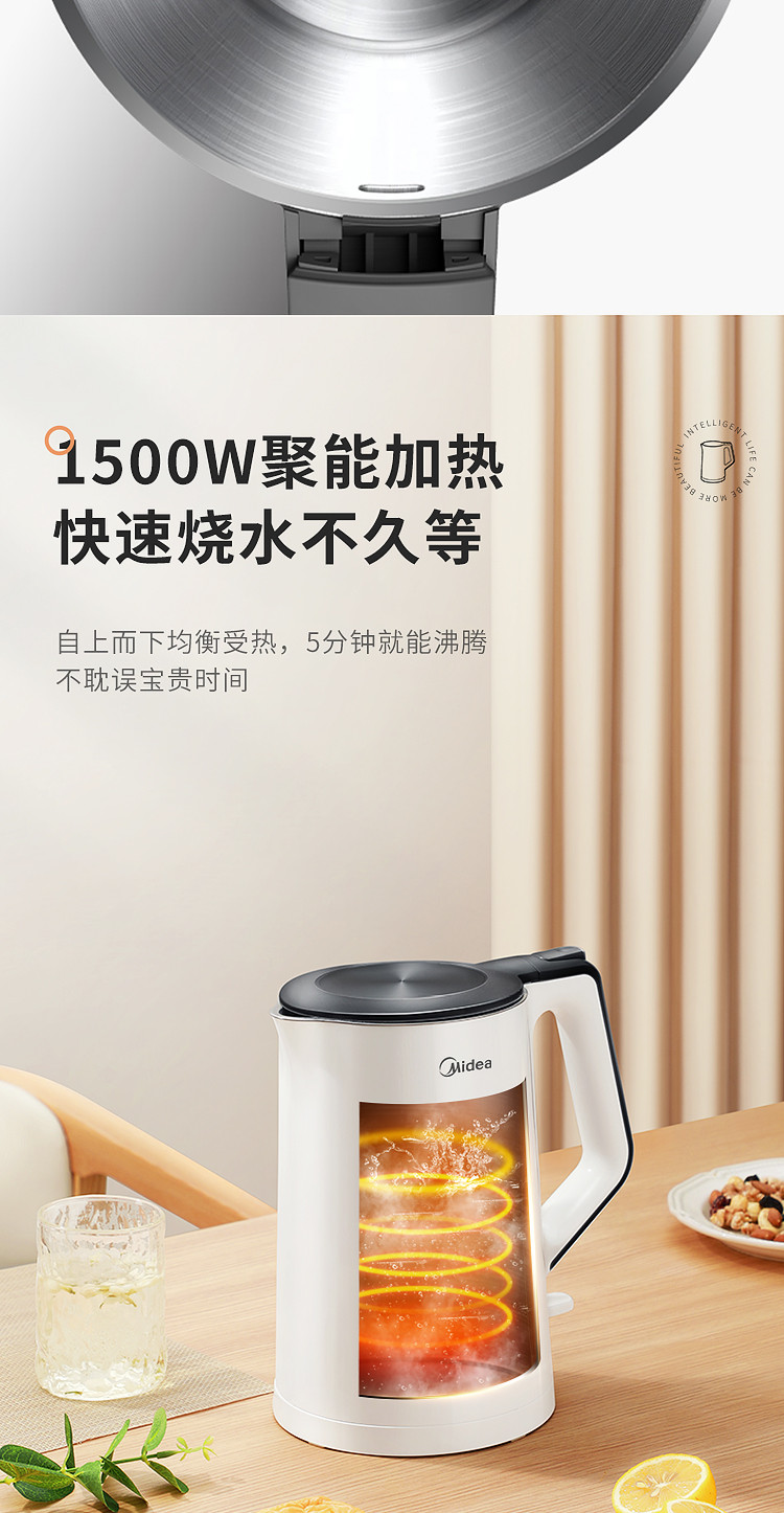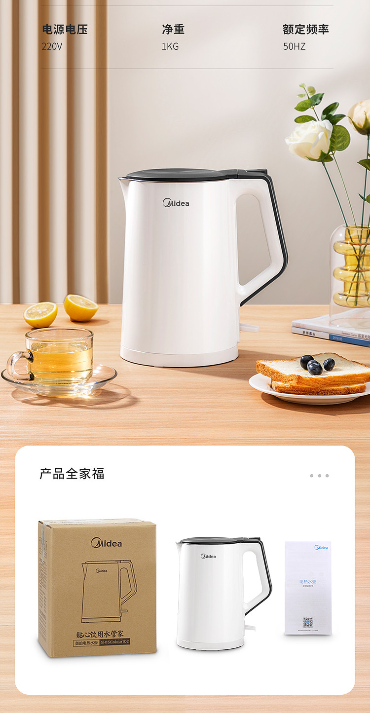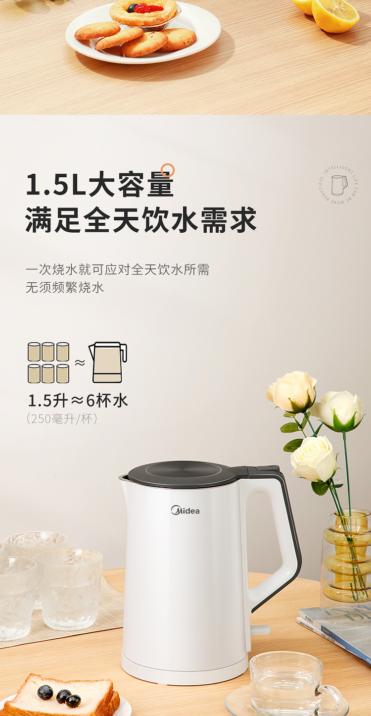 【快速沸腾 双层防烫】1.5L净甜电热水壶Colour102