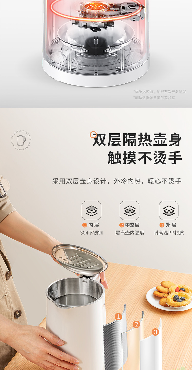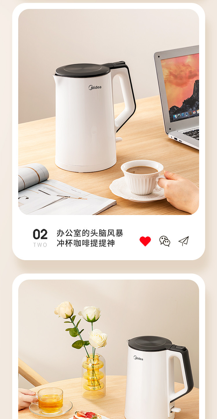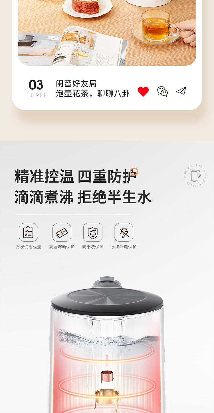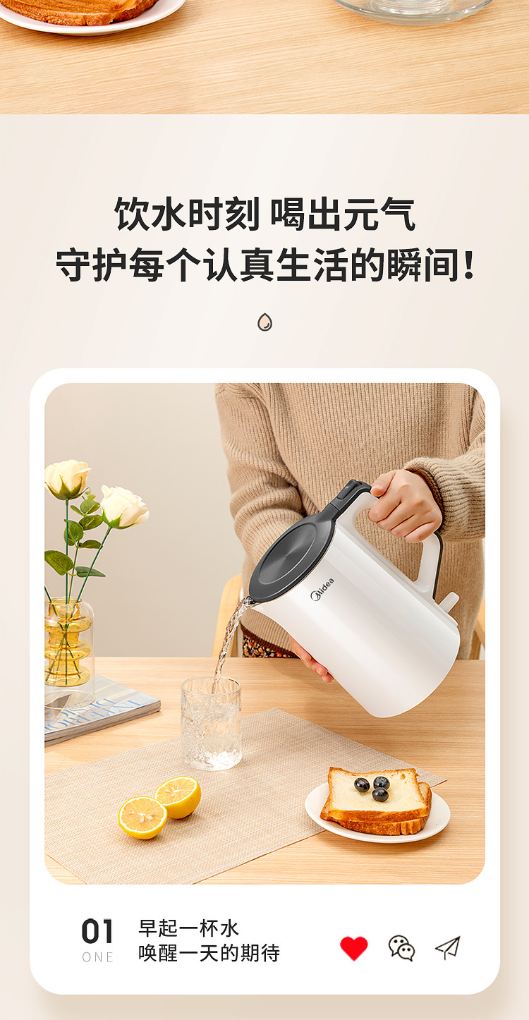 【快速沸腾 双层防烫】1.5L净甜电热水壶Colour102
