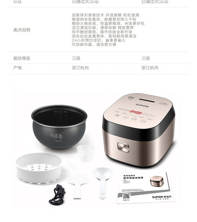 | 生产/经销/进口厂家: | 浙江绍兴苏泊尔生活电器有限公司 | 蒸屉材质: | PP(聚丙烯) |