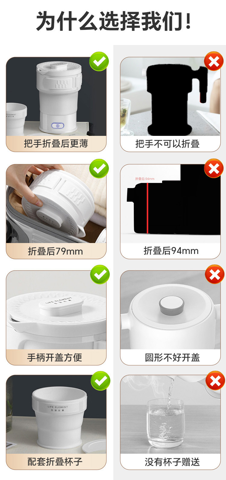 折叠电热水壶便携式迷你旅行电水壶烧水壶户外露营出差旅游小型