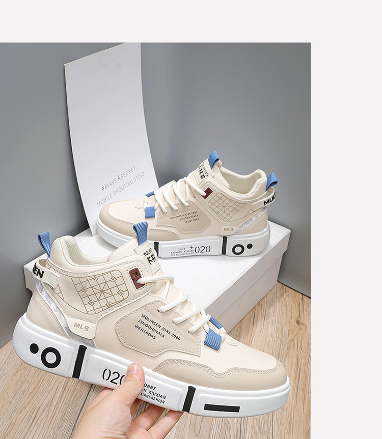 皮面保暖鞋子高帮休闲运动鞋厚底增高小白鞋男鞋板鞋