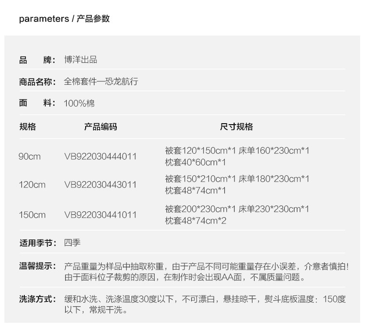 | 执行标准: | GB/T 22796-2021(因批次不同,具体以实物标签信息为准) | 商品编码: | VB922030444011 |