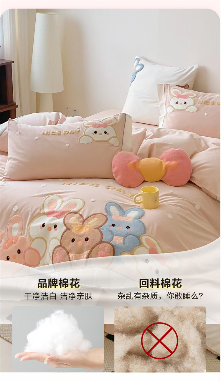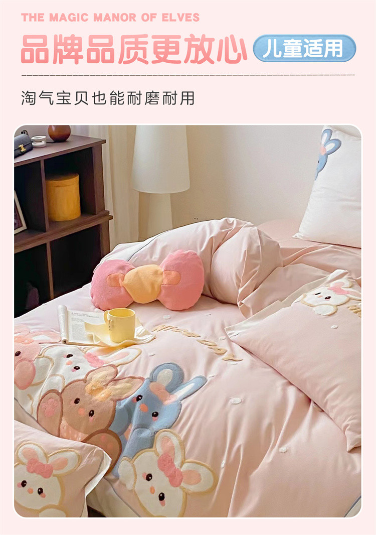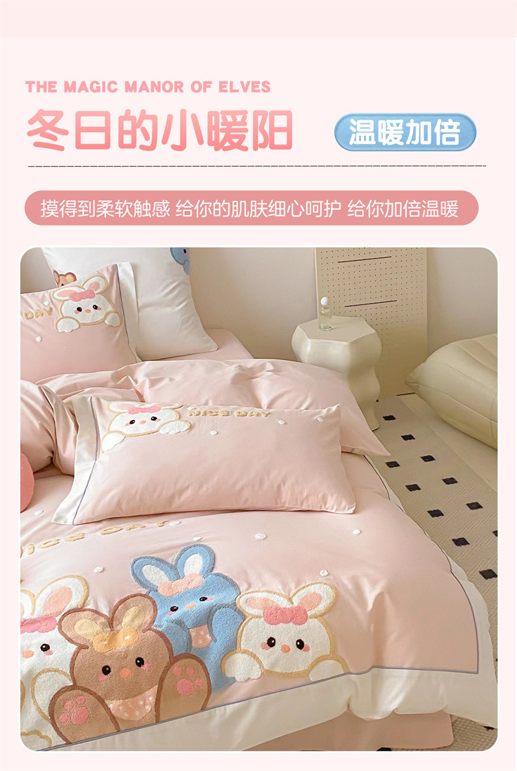 - 儿童绣花卡通牛奶绒套件加绒被套加厚双面绒床上用品