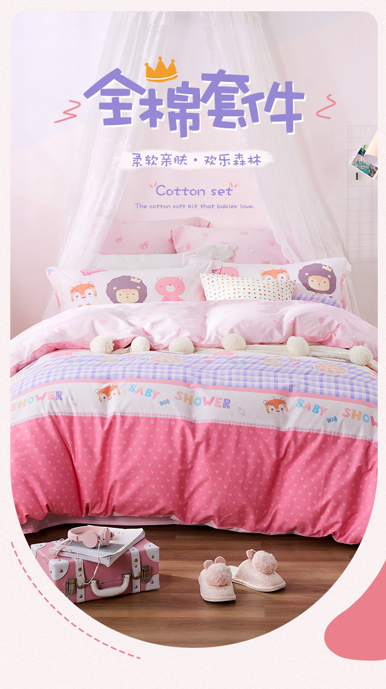 纯棉床上用品小清新印花套件舒适全棉床单被套床上用品床上套件