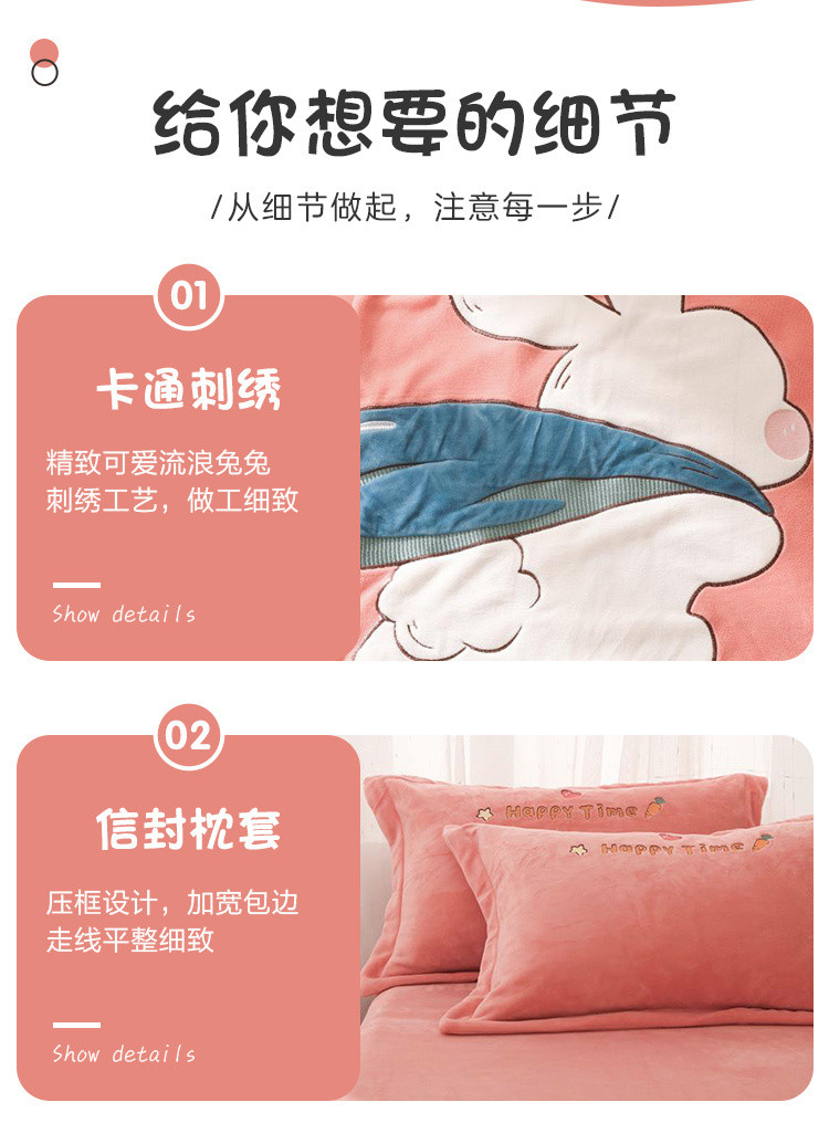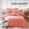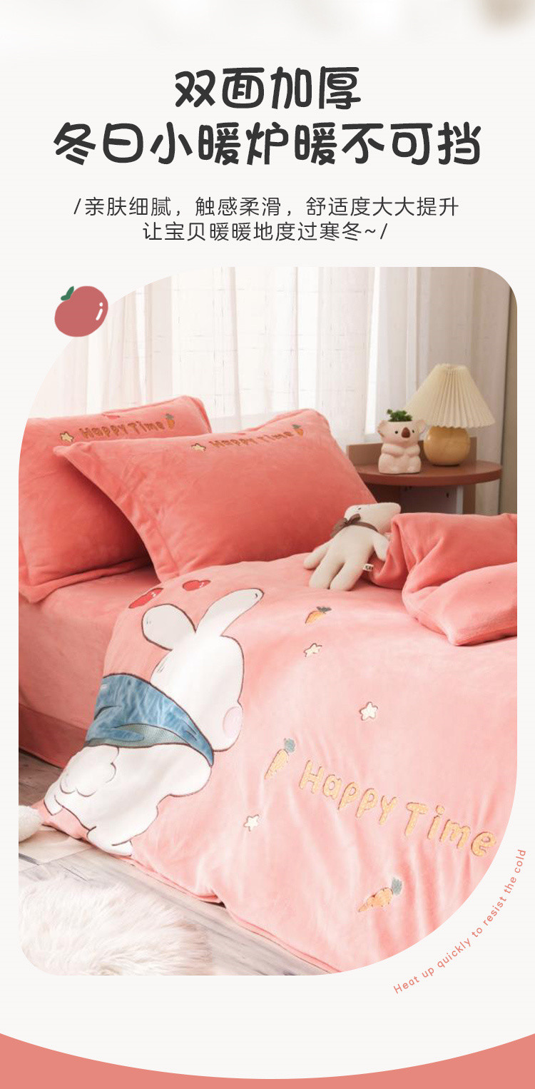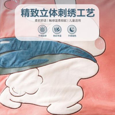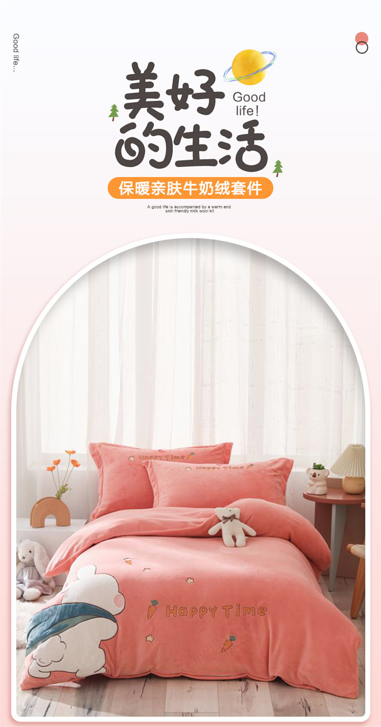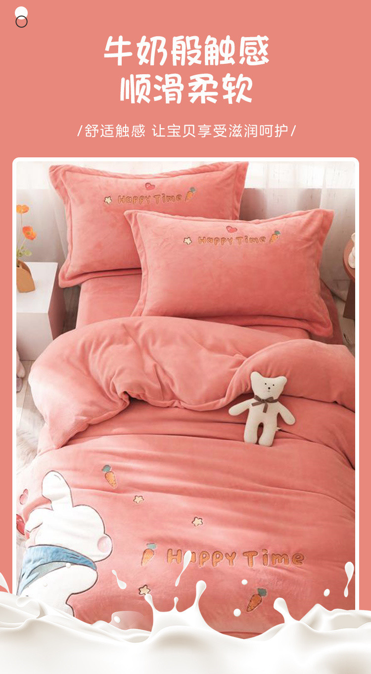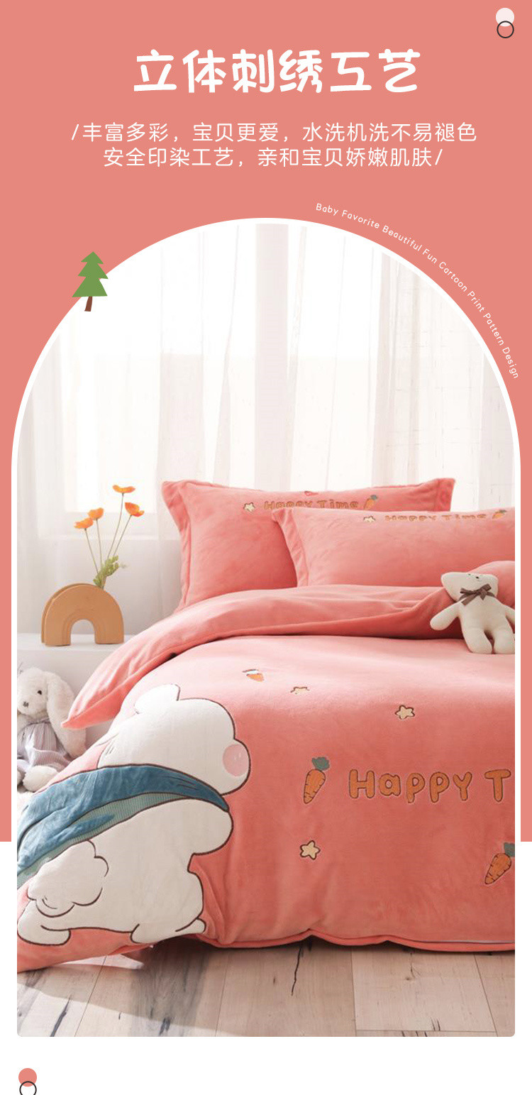 - 儿童绣花卡通牛奶绒套件加绒被套加厚双面绒床上用品